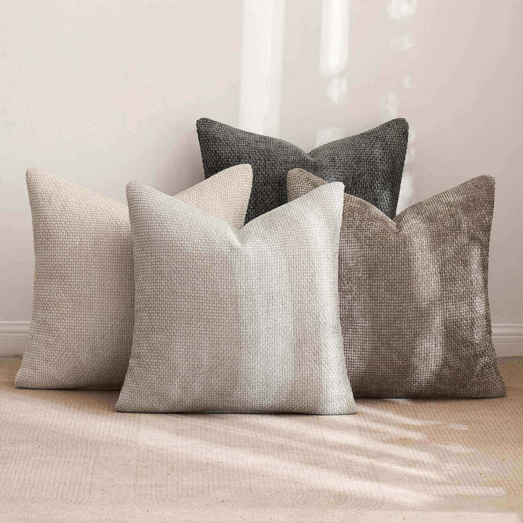 Elevate your sofa with these chenille 18×18 pillow covers, perfect for luxury throw pillows and adding a soft, velvety touch to any room. The neutral tones and seamless hidden zipper create a polished, versatile look that blends effortlessly with various décor styles. Customers love the plush texture and rich colors, making their sofas feel stylish and inviting.