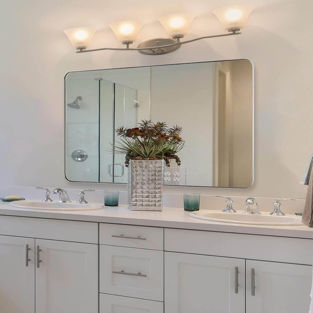 This 24″x40″ chrome metal framed mirror features a sleek stainless steel frame, 4mm HD glass, and 9mm MDF backboard for durability and style. Its modern, minimalist design with rounded corners is perfect over a wide vanity or as a statement piece. One customer shared how it “feels solid, looks good, presents well,” and mentioned that their spouse loved it—showing that this mirror not only elevates your space but also truly delivers quality you can see and feel.