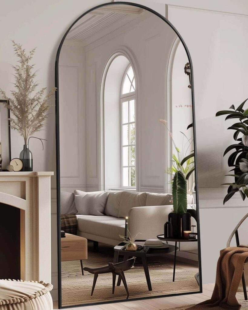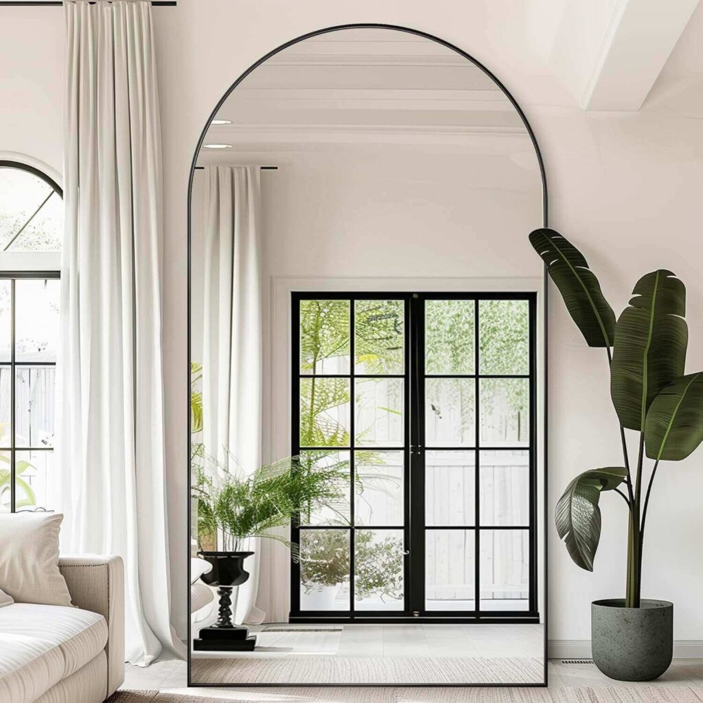 Add elegance and functionality to your room with this 91″x46″ Full-Length Arched Mirror (Color:Black). Its sleek aluminum frame and arched design create a classy look while remaining lightweight and easy to move. Made with HD-imaging, explosion-proof glass, it ensures clear reflections and safe use. Customers love how it brightens their space, fits perfectly, and feels sturdy, with many praising the secure packaging and quick delivery. Versatile for standing or wall-mounting, it’s a stylish addition that enhances any room instantly.
