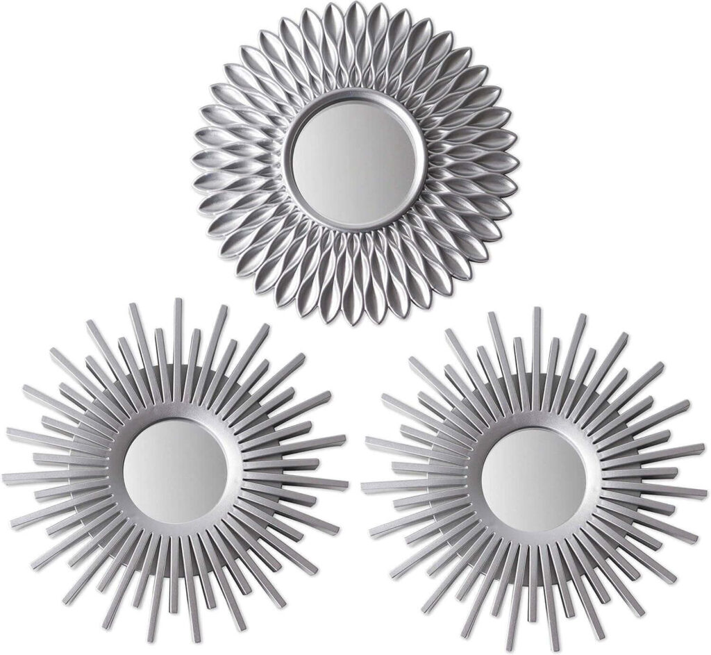 This pack of 3 silver wall mirrors is a stylish and versatile way to refresh any space. Lightweight and easy to hang, they work beautifully together as a set or separately across different rooms. Customers love how high-end they look despite the plastic frame, noting the shine and quality stand out even from a distance. The size is ideal for gallery walls, offices, or bathrooms, blending well with modern, vintage, and eclectic decor. A great value decorative accent that feels elegant without being heavy or bulky.