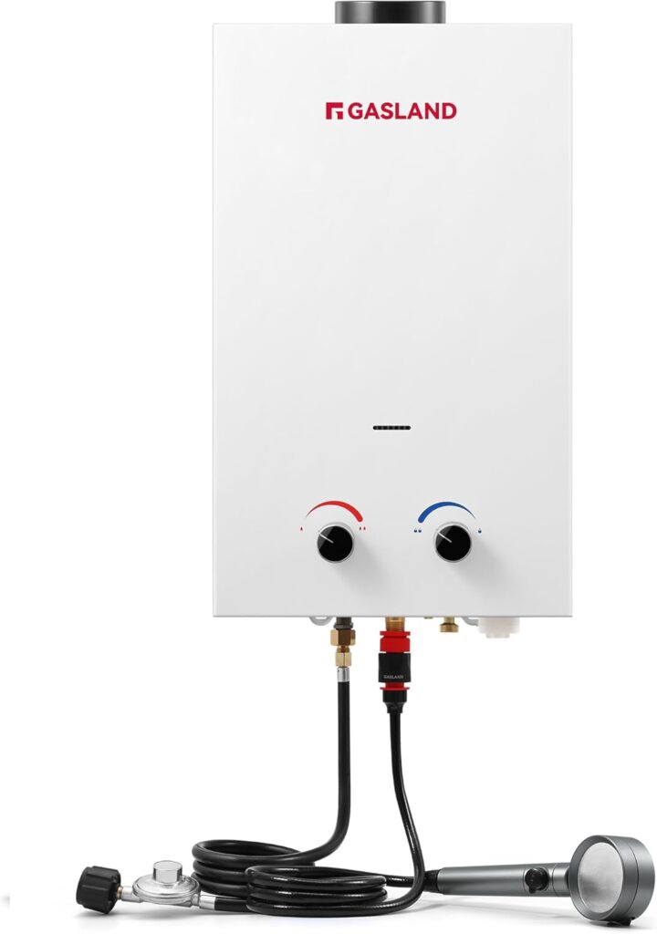 The GASLAND 16L propane tankless water heater delivers up to 4.22 GPM, perfect for off-grid camping, RVing, or outdoor use. It runs on a 20 lb. propane tank with CSA-certified safety features and an LED temperature display. Quick to heat water, reliable, and easy to use, it’s ideal for showers or washing tasks outdoors.