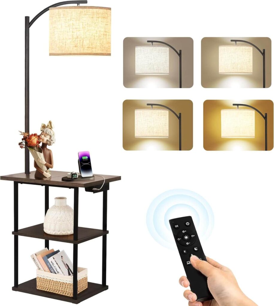This PESRAE floor lamp with side table combines a sturdy natural wood design with adjustable foot pads for stability and durability. It features a 9W LED light with stepless dimming and four color temperatures, allowing you to create the perfect atmosphere. Built-in USB A + C ports and an AC outlet make charging devices convenient while the 3-layer table provides extra storage for books, drinks, or decor. Customers praise its style, functionality, and ease of assembly, noting the light options and charging ports are especially useful. Many find it a practical and attractive addition to bedrooms or small living spaces.